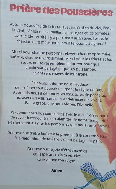 Remontons un peu l’histoire… 2023. Le collectif Anastasis propose la première édition du Festival des Poussières. De 150 participants, le festival est passé à 600 pour sa 3ème édition. Ce festival propose 4 jours de rencontres, de discussions, d’ateliers et de fête pour penser et vivre notre monde à partir de l’Évangile et de son potentiel révolutionnaire. Le collectif organisateur s’est autonomisé depuis 2024, mais la philosophie d’Anastasis reste présente dans le programme et l’organisation.